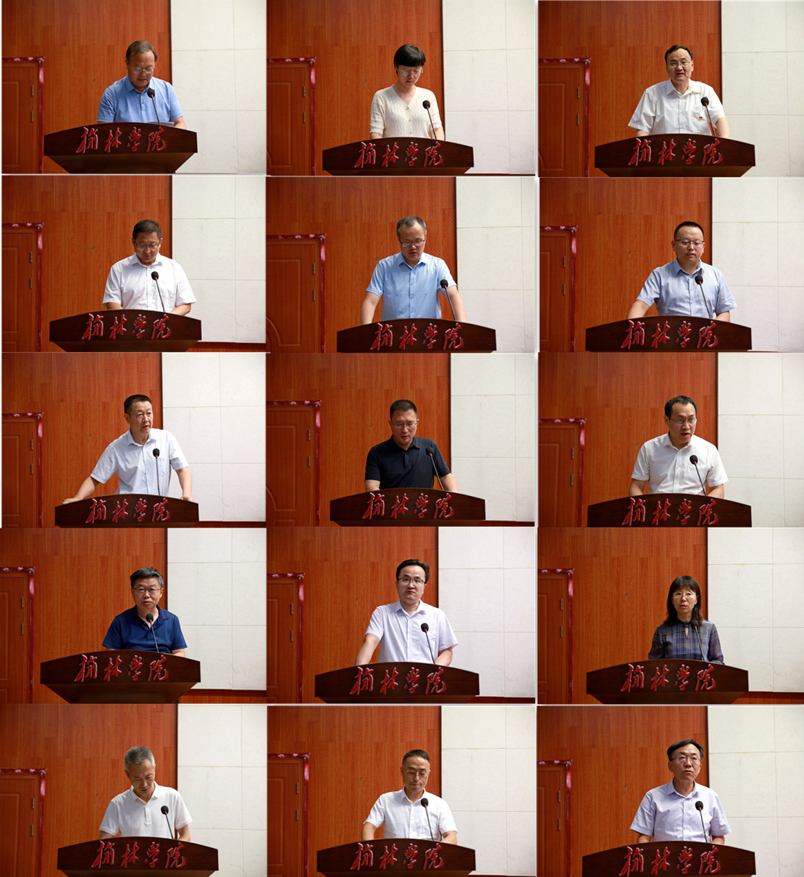 张新柱从七个方面就学习贯彻习近平新时代中国特色社会主义思想主题教育总要求“学思想、强党性、重实践、建新功”进行了阐释,并对学校工作提出要求。他强调,一要大学习,学出新高度。向书本学、走出去学、加强培训学,通过暑期大学习破故步自封圈、入学术行业圈;二要大调研,研出新思路。通过调查研究,集思广益,向研究要出路、向管理要效率;三要大碰撞,碰出新智慧。在学习、研究的基础上碰撞出智慧的火花,点燃激情砥砺前行;四要大谋划,谋岀新的大发展。落实好百年校庆庆典精神和省委书记赵一德书记的讲话、教育部对学校发展提出的要求,意气风发争创一流;五要大转型,转出新的特色。建设现代产业学院和大学科技园,推动学校一流应用型建设;六要大跑三,跑出新的成效。利用暑假继续跑政府、跑企业、跑校友,乘势而上,跑出加速度;七要大提速,提出新的质量。要进一步构建优化解放思想、作风建设、能力提升、追赶超越“四位一体”的高质量发展模式,探索非省会城市地方高校高质量发展实现路径。
