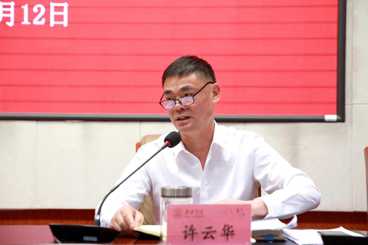 校长许云华表示,此次专题党课思想深邃、条理清晰、内涵丰富,把主题教育理论和学校高质量发展实践进行了很好的融合。他希望大家贯彻落实好此次专题党课内容,一要把“奋斗”精神真正融入每位师生的血液中,成为前进的原动力;二要向研究找出路,向管理要效率,用数据来评价各项工作;三要完善学校、部门、院系、研究和教研室“五位一体”考核体系,全面精细化梳理人才数量、结构、状态、贡献等,做到人尽其才;四要深入研究形势政策,加大改革力度,尤其是职称评定、科学研究、标志性成果等方面;五要持续学习、强化调研,把地域优势和产业优势转化为学科优势,加快一流应用型大学建设。