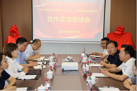 8月23日上午,马克思主义学院与中共米脂县委党校在中共米脂县委党校教学基地(米脂杨家沟红色文化培训中心)开展举行座谈并签订协议。中共米脂县委副书记、县委党校校长刘斌、米脂县人民政府副县长、杨家沟镇党委书记鲍雪娇、榆林旅投米脂文旅产业投资开发有限公司总经理侯宁,中共米脂县委党校班子成员,马克思主义学院全体班子成员及教学秘书共同参加了本次座谈会。