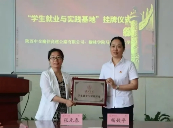 为拓宽毕业生就业领域,深化校企合作。近日,陕西中交榆佳高速公路有限公司党总支书记、董事长、总经理方学军一行莅临我校座谈交流,并举行“学生就业与实践基地”挂牌仪式,马克思主义学院领导班子参加。
