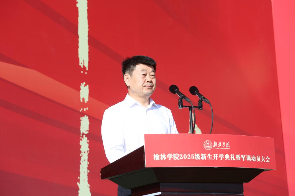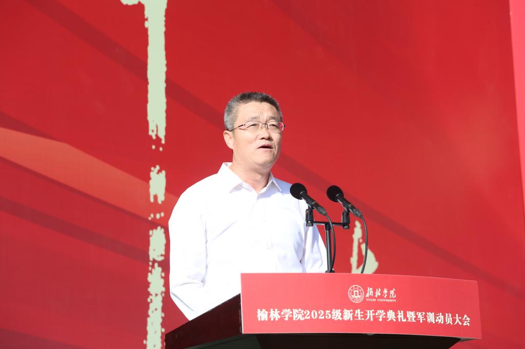 康伟代表学校向全体新生表示欢迎和祝贺,并作了题为《奋楫扬帆胸怀家国 做全面发展的五乐新人》的讲话。康伟指出,选择榆林学院就是选择扎根西北革命的红色沃土,就是选择融入校地共生的奋进征程,就是选择跻身一流应用型大学的崛起浪潮。他强调,榆林学院无比珍视每一位学子,把全体新生的姓名全部“刻进”了李子洲老校长提出的“读书勿忘救国,救国勿忘读书”的校训里,就是想告诉大家,从今天起,同学们将与榆林学院血脉相连,榆林学院将成为同学们相伴一生的精神家园。