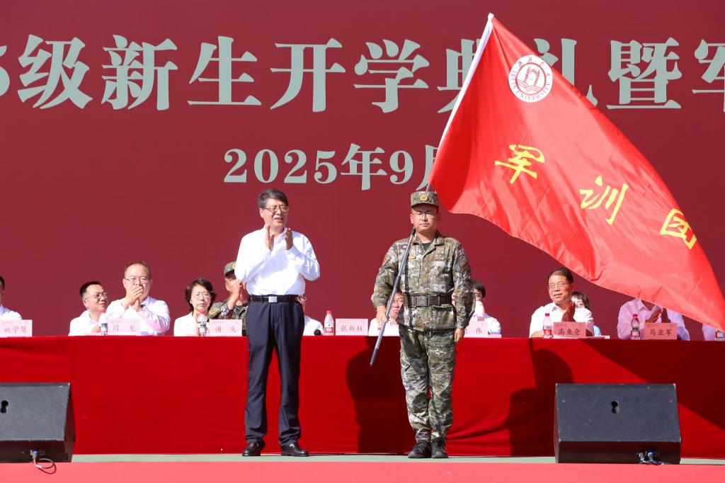 开学典礼后,新生将开始14天的军训,相信2025级新生能服从命令、听从指挥、刻苦训练,以军人的标准严格要求自己,以饱满的热情和顽强的意志,努力完成各项训练任务,新的人生篇章正等着你们来书写。今年是中国人民抗日战争暨世界反法西斯战争胜利80周年,从抗战岁月到和平时期,从救亡图存到复兴追梦,青年一代要勇担历史使命,弘扬伟大抗战精神,不忘来时路,吾辈当自强,珍惜每一刻,奋斗每一天,在理论学习和社会实践中放飞青春梦想,在不懈奋斗中书写人生华章,努力成为堪当民族复兴大任的时代新人。
