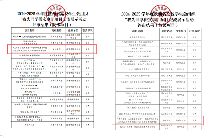 近日,由共青团陕西省委员会指导、陕西省学生联合会主办的2024-2025 学年度陕西省高校学生会组织“我为同学做实事”项目交流展示活动圆满收官。作为陕西省高等教育体系中践行“五育并举”育人理念的重要实践载体,此次活动汇聚全省47所高校的110个优质服务项目,集中展现了新时代高校学生组织服务学生成长、助力教育高质量发展的责任担当。我校学生会教育学院学生分会申报的“五乐润心・美育赋能”多元文体实践与社区服务创新行动荣获“精品奖”,研究生会报送的“青研青语・人文数智双赋能---研究生写作素养提升与AI技术应用实践项目”获评“优秀奖”。这两项荣誉不仅是对我校学生组织精准对接学生需求、扎实开展服务工作的充分肯定,更是对学校以项目为抓手推动“五乐育人”理念落地见效的有力印证。