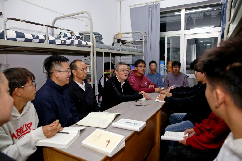 在法学与历史文化学院5#313宿舍,康伟与学生亲切交谈,关切询问同学们的家庭生活和在校学习情况,耐心倾听大家对学校建设发展的想法与期待;随后围绕《平凡的世界》与同学们逐一畅谈读书心得感悟,共话奋斗精神,让宿舍变成了生动的“读书分享会”现场。