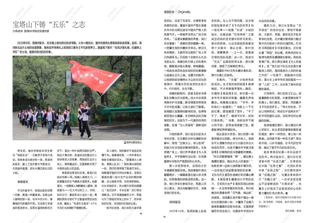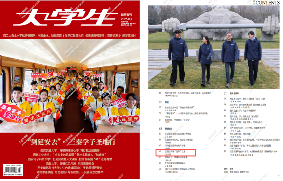 焦恩承表示,此次文章成功刊发,既是对个人青春耕耘、研学感悟的肯定,更是对学校长期以来青年思想引领与文化育人工作的高度认可。他坦言,陕北这片红色沃土给予了自己成长的养分,未来也会继续坚守初心,传递红色力量,讲好时代新声。我校团委组织部负责人表示,此次成果是对学校红色育人模式的有力印证,未来学校将继续深化人文教育与思政教育有机融合,鼓励广大学子用脚步丈量祖国大地,用内心感应时代脉搏,创作出更多有温度、有深度的优秀作品,在更广阔的舞台上讲好榆林大学故事,传递榆大奋斗青年好声音。