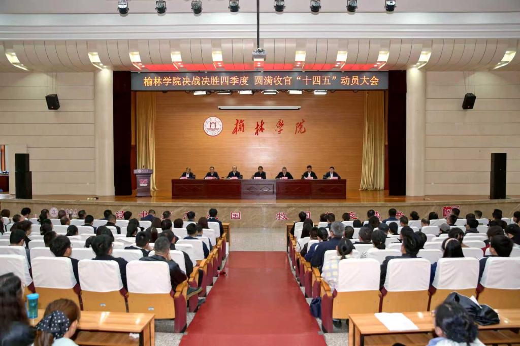 10月10日下午,榆林学院在图书馆学术报告厅召开决战决胜四季度,圆满收官“十四五”动员大会。党委书记张新柱讲话,党委副书记、校长康伟主持,全体校领导、科级以上干部,相关职能部门全体人员及教研室主任、辅导员、班主任和学生代表参会。会上,党委副书记闫龙安排部署了决战决胜四季度,圆满收官“十四五”各项工作。发展规划处负责人对学校2025年追赶超越任务整体完成情况进行通报。人事处、信息工程学院、建筑工程学院负...